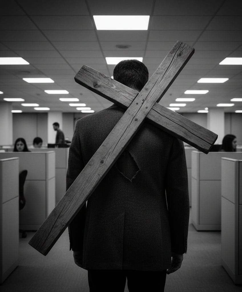 Most men don't have careers; they have crosses they've learned to hide under a suit jacket.