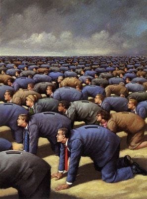 The devil doesn’t need to hunt you if you’re already behind a desk. He just sits back and waits for the 40-year clock to run out on your corpse.